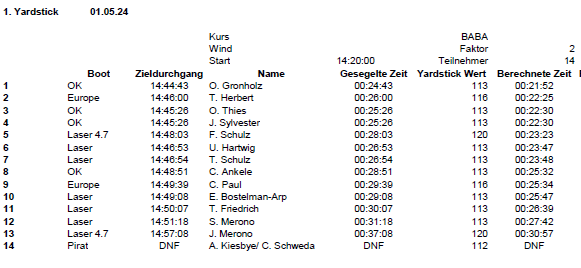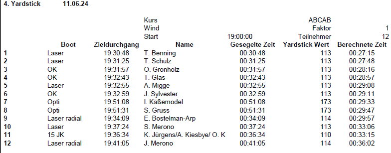 Anbei das Gesamtergebnis der Yardstick-Serie 2024: